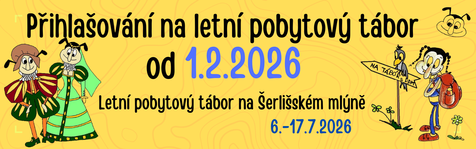 PŘIHLAŠOVÁNÍ OD 1.2. Letní dobrodružství v Orlických horách na Šerlišském mlýně. 12 dní plných zábavy, her, kamarádíčkování a celkově prostě toho táborování. Letos na téma Středověk.